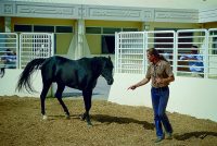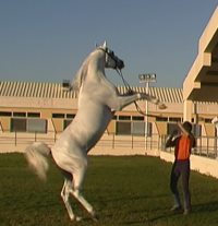 ....wie Hans-Jürgen Neuhauser in den Vereinigten Arabischen Emiraten mit zwei sehr wertvollen aber extrem aggressiven Deckhengsten des Scheichs von Sharjah arbeitet.